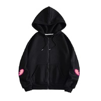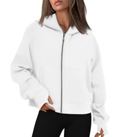 เสื้อมีฮู้ดคอกลมแขนยาวสำหรับผู้หญิงผ้าคอตตอนสีพื้นแบบลำลองสวมใส่สบายมีซิปสำหรับ100%