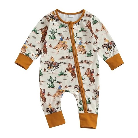ชุดรอมเปอร์ของเด็กผ้าฝ้ายแขนยาว100% ใหญ่พิมพ์ลายเก๋พร้อมซิปเต็มรูปแบบ